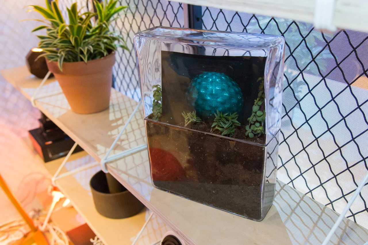 "In designing the piece, Telhan says he and Neff strove for a “noir” look and feel. “We wanted an object you could place inside the Blade Runner house or the Minority Report house,” he adds. “We played around with different images, the look and feel of the glass container, how much dirt and the different ingredients in the dirt—it’s quite a bit more complex than it looks.”